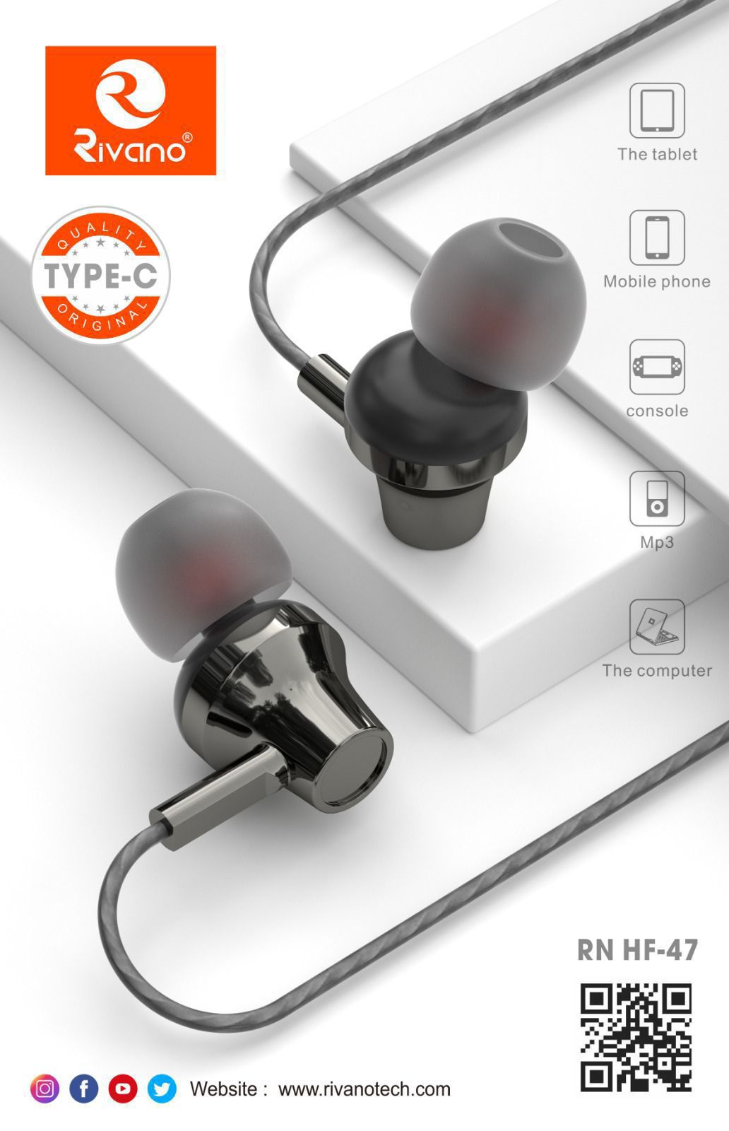 Type-C Headset with Mic, Rivano Nylon Cotted Heavy Wire